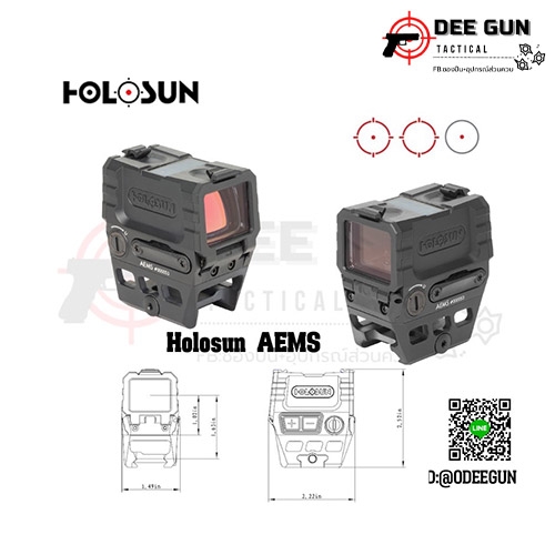AEMS features include glass flip-down lens covers, Holosun’s MRS (Multi-Reticle System) with a precision 2MOA dot inside a 65MOA circle, Solar Failsafe, and Shake Awake technology. A side mounted battery trays houses a 2032 battery which provides up to 50k hour battery life. Holosun’s Red Super LED provides 12 intensity settings, 4 of which are night vision compatible.