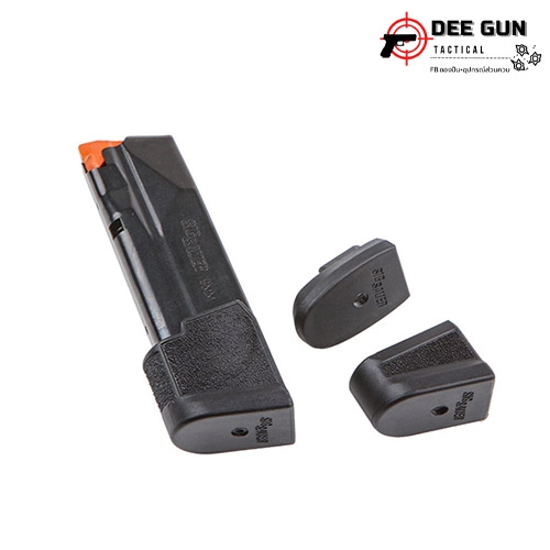 Factory 17-round steel magazine for the P365-XMACRO pistol but also fits all P365 9mm models. This magazine includes rear witness holes to confirm loaded capacity and an orange follower making it easy to identify when unloaded. We include two additional interchangeable floor plates to accommodate the grip length differences of the P365, P365X, and P365XL. It comes configured for the P365-XMACRO.